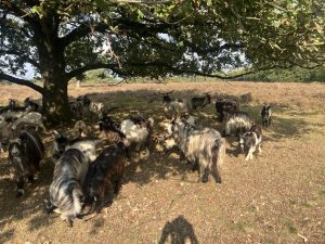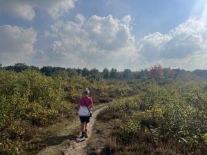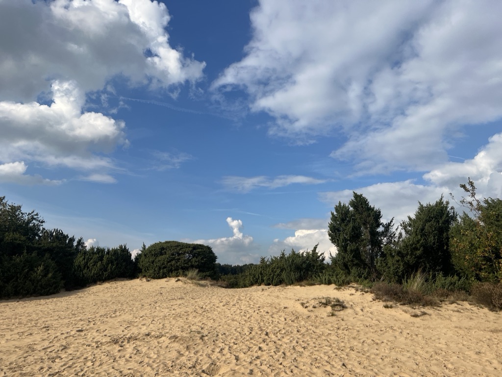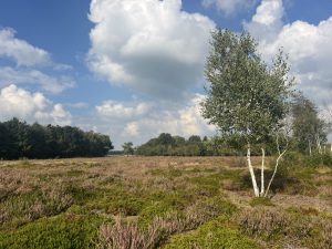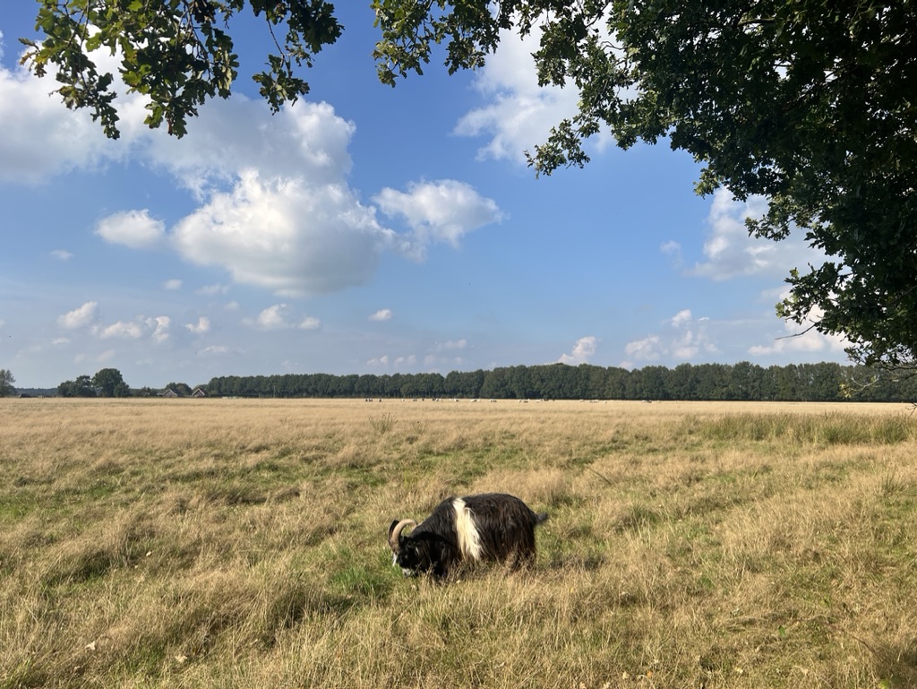 Ik maak met Els een prachtige wandeling door het weidse Mantingerveld. De Jeneverbesroute, een prachtige wandeling door wisselend landschap, bos, heide, veel jeneverbesstruiken, veel geiten (pas op, niet te dichtbij komen, ik was even iets te enthousiast!), de prachtige bloeiende kardinaalsmuts, een buizerd die met haar jong hoog boven de velden zweeft, ganzen vliegen luid gakkend over, een strak blauwe lucht met mooie witte wolken. En het was onwaarschijnlijk warm! Wat een dag; een plaatje!